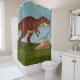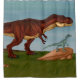 Um Tiranossauro Rex e Velociraptor caminham através de um campo de erva.