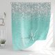 Cortina Para Box Teal Brugado Metal Silver Glitter Nome Monograma