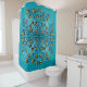 Cortina de chá de monstro ocular com uma ilustração digital de uma criatura estranha - mistura de uma planta simétrica com folhas e olhos amarelos sobre fundo azul.