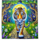 Esta cortina de chá tem um design de tigre nela.