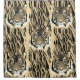Um retrato majestoso de uma face de tigres em um pano de fundo de pelúcia castanho e preto listrado. Beleza selvagem e ousada.