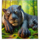 Esta cortina de chá tem um tigre preto e branco gravado nela.