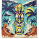 Torne mais claro o seu banho com esta legal cena de praia de tiki com palmeiras numa cortina de chá.