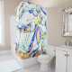 Cortina Para Box Tinta seca não, imagem com manchas cianas laranja,