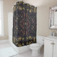 Exótica e escura, com cores naturais e um ligeiro sabor do Oriente, o belo padrão de ZoeSPEAK nesta Cortina de Chá foi feito a partir da fotografia original de Zoe de uma lixeira de ferro e tecido tropical. Frentes de palma e outras folhas tropicais, em tons de verde claro, terracota e bege, descansam graciosamente sobre fundo negro atrás da estrutura.