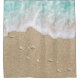Lindas ondas de praia turquesa rolando em areia macia de praia coberta em bonito conchas decoram esta cortina de chá, fazer perfeito para o banheiro temático da praia.