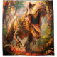 Esta cortina de chá tem um Tryannosaurus Rex nela.