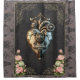 O fundo escuro proporciona o contraste perfeito com a estrutura opulente de cor dourada, que é decorada com padrões florais complexos e corações delicados. Um impressionante coração embutido feito de metal brilhante não apenas irradia força, mas também conta histórias de paixão e aventura. A design não é apenas um banquete para os olhos; é um convite para sentir a magia do amor - forte, eterno e cheio do maravilhamento.