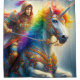 Esta cortina de chá tem um unicórnio com um guerreiro a montá-la.