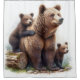 Uma bela representação de um urso pardo e seus dois filhotes, mostrando calor familiar e beleza da natureza. As cores vivas e detalhes requintados destacam os animais em seu hábitat natural.