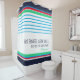 Estilo moderno, costeiro, azul, branco, vermelho e verde verde verde verde, cortina de chá listrada, com texto personalizado, projetado por TheLakeIsland. Altere ou apague facilmente qualquer texto padrão, nome da família clicando no botão Personalizar. Adicione botões cerâmicos correspondentes, travesseiros decorativos interiores e exteriores da nossa loja, ou combine-os com diferentes itens da nossa loja. Decoração recomendada para casas de férias, casas de lago, casas costeiras, veleiros, casas de hóspedes, AirBnb, estilo mínimo e casas modernas, etc. #striped #moderna #banheiro #chá #showerroom #customtext #showercortain