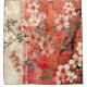 Trabalho de arte com listras vermelhas e creme e sakura. O design combina chique com wabisabi japonês e parece excelente em uma decoração maximalista.