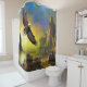 Um vôo calvo da águia acima do vale da montanha abaixo. Com um por do sol amarelo e azul nesta pintura a óleo projete psto sobre esta cortina de chá.