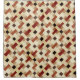 Um padrão de quadrados coloridos em tons de marrom dispostos em design geométrico assimétrico domina o quadro. e cria uma aparência semelhante ao mosaico, reminiscente da arte dos pixéis ou uma colcha digital simplificada.