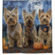 Libere o espírito assustador com esta design sombria do Dia das Bruxas apresentando um bando de cachorros sob um céu escuro e iluminado, cercado por morcegos voadores e abóboras brilhantes. Perfeito para aqueles que amam um toque de diversão terrível com seus amigos peludos!