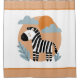 A ilustração artística cerâmica de uma zebra, num estilo moderno influenciado escandinavo, com cores planas arrojadas e formas simples e arredondadas, dá uma influência divertida do século médio, um charme desenhado à mão, com detalhes mínimos. Um fundo pastel macio, faz um design amigável e alegre.