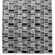 Um design de padrão-abstrato desenhado à mão, constituído por arranjos de pontos de uma variedade de tamanhos intercalados com retângulos e linhas sólidos.