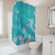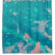 O trabalho de arte de abstrato por ZoeSPEAK nesta Cortina de Chá foi feito a partir de uma fotografia original de gotas de chuva em uma folha no jardim. As cores do design são azuis aqua tropical e pinks de pêssego.