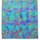Formas de azul, roxo, rosa, laranja, verde limão, preto, vermelho e muito mais são tecidas através deste abstrato. Enquanto há muita cor e movimento, o padrão reticulado dá a isto a aparência de uma colcha moderna.