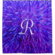 Cortina Para Chuveiro Abstrato Floral Roxo com Monograma Branco