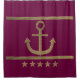 Cortina Para Chuveiro âncora dourada em fundo vinho