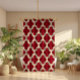 Cortina Para Chuveiro Beige Quatrefoil Ikat Pattern Burgundy Fundo