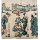 Impressão mostra várias mulheres e vários elementos arquitetônicos na estação de Fukagawa, na estrada Tokaido. impressão Japonês Vintage