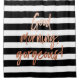 Tire o dia de folga a um excelente, com um elogio desta moderna cortina de chás. As palavras "Bom dia, maravilhoso!" aparecem na falsa tipografia do roteiro de ouro rosa num fundo listrado preto e branco.