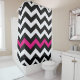 Cortina Para Chuveiro Chevron Preto e Branco com Destaque Rosa Quente