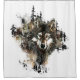 Cortina Para Chuveiro Cinza de Aquarela Wolf Mountain Animal Art