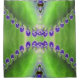 O trabalho de arte abstrato, verde e roxo nesta Cortina de Chá foi feito a partir de uma fotografia original de ZoeSPEAK de uma folha numa planta de kalanchoe. As pequenas partes na borda da folha (empurradas para roxas nessa abstração) caem e se tornam novas plantas.