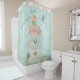 Cortina Para Chuveiro Fada em xícaras empilhadas com passarinho