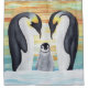 O pinguim de imperador da Antártica Parents com seu pintinho bonito do pinguim do bebê. Os trabalhos de arte acrílicos da pintura da família do pinguim por Donna Leger feito para a ironia projetam. Todos os direitos reservados.