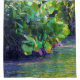 A obra de arte original impressionista de ZoeSPEAK nesta Cortina de Chá foi feita a partir da fotografia original de Zoe de uma lagoa formada por manguezais, com suas raízes longas crescendo em águas salgadas espumantes. Compartilhando a lagoa estão as árvores de uva-do-mar, com suas folhas verdes redondas amarelas penduradas sobre a água, tornando-a em tons de verde. A luz do sol atravessa, adicionando realces amarelos e azuis ao rippling.