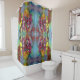 CORTINA PARA CHUVEIRO MANTEIRAS VERMELHAS COM ESTAXAS AMARELAS,PÃO AZUL