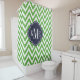 Cortina Para Chuveiro Monograma verde e Marinho Chevron