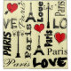 Design de texto de Paris para Dia de os namorados com formas vermelhas de coração, Torre Eiffel e decoração de lâmpadas de rua em fundo amarelo