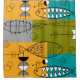 Peixes modernos art. da cortina de chá do meio século lunáticos e peixes grandes do divertimento na laranja, no abacate em uma cerceta e no fundo cinzento com várias formas abstratas.