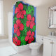 Cortina Para Chuveiro Red Hibiscus e Monstera