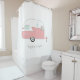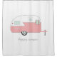 Esta cortina de chá caracteriza uma ilustração original pela tinta encantador de um campista retro cor-de-rosa, igualmente conhecida como uma caravana. A pia batismal do roteiro proclama - o campista feliz. Mude a mensagem ou personalize-a com nomes.