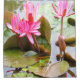 Uma bela cena de um sapo rodeado por bonito almofadas de lírio cor-de-rosa floridas, nesta maravilhosa cortina de chá.