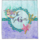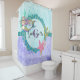 Cortina Para Chuveiro Sereia Úmida Cúbica Teal e Monograma Roxo