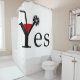 Sim, texto. A letra Y é convertida num copo de vinho tinto com uma palha inserida. A jante de vidro é decorada com uma fatia de limão. Engraçado verão, tema de amor e romance. Presentes para todos. Cortina de chá para decorar seu banheiro por diversão e bom humor.