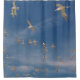 A fotografia original de ZoeSPEAK nesta Cortina de Chás captura um bando de tetos decolando de uma praia na Costa do Golfo da Flórida, indo para o oceano. Os pássaros brancos, à luz do sol da tarde, se destacam contra o céu azul profundo. As árvores têm penas pretas em suas cabeças e bordas das asas, e caudas forjadas como caudas de engolir.