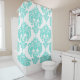 Cortina Para Chuveiro Têxtil Azul Aqua e Branco Glamour Real Damasco