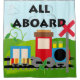 Os miúdos que amam trens amarão esta cortina colorida, do divertimento do trem do tema de chá que caracteriza uma locomotiva e um carro em uma trilha de estrada de ferro com texto preto que lê tudo a bordo!