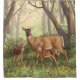 Um veado-mãe de cauda branca e seus adoráveis filhotes gêmeos na floresta do primavera.