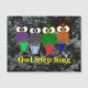 Hora de um canto de coruja! Um fundo de árvores verdes de inverno faz um feriado festivo. Quatro corujas bonitinhas têm uma lanterna nas cores da classe das tradições universitárias de Bryn Mawr - vermelho, verde, azul claro e azul escuro. As lanternas são fornecidas a cada estudante do primeiro ano na cerimônia de Lanterna Noite. Depois disso, todos os estudantes e alunos de Bryn Mawr orgulhosamente carregar sua lanterna para cantar nas noites das tradições e nas reuniões de Bryn Mawr. Cartão magnético divertido para enviar e compartilhar com amigos da Mawrter.