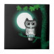 Uma coruja sentada em um galho de árvore com uma lua de cheio. Tinta verde para todos.