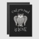 O desenho da coruja com corpo em forma de coração e texto personalizado.